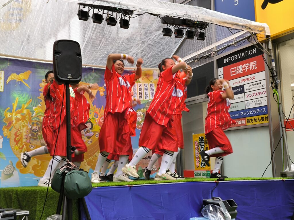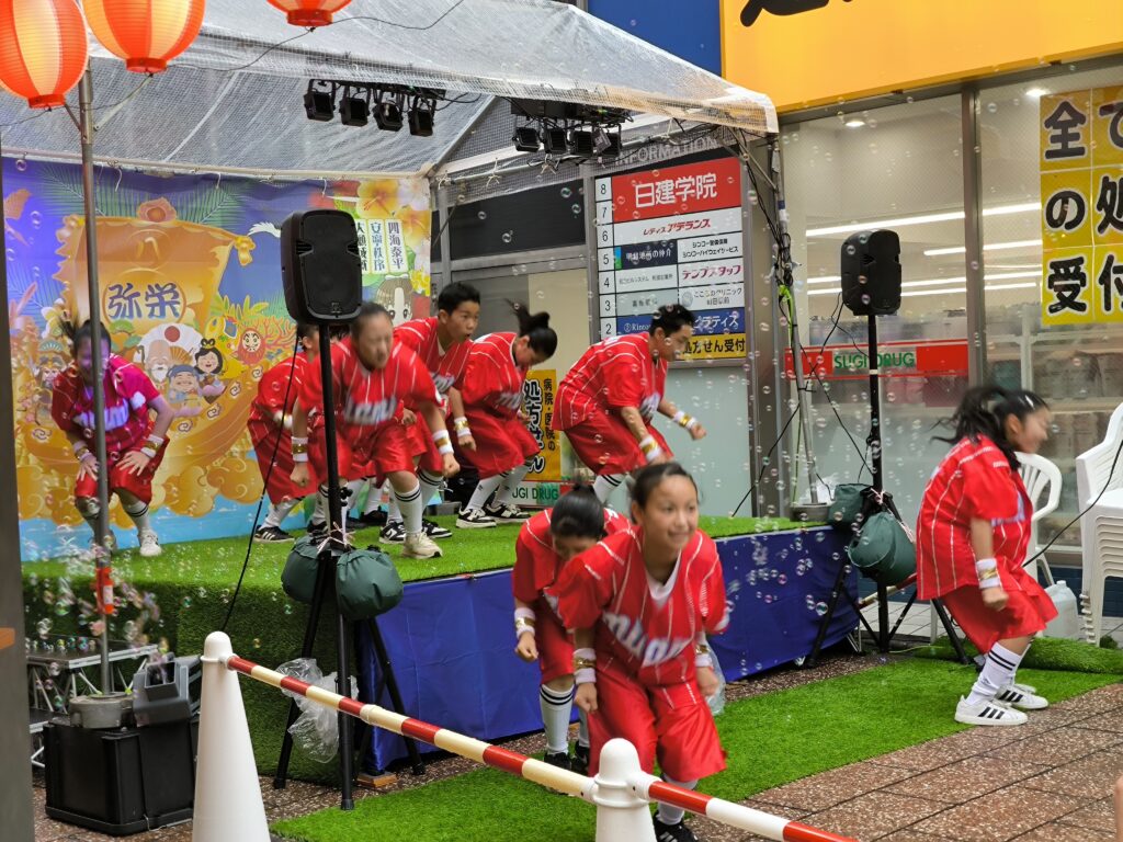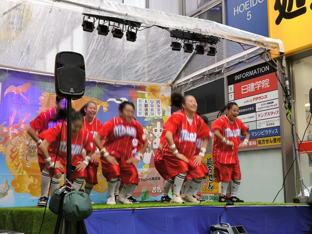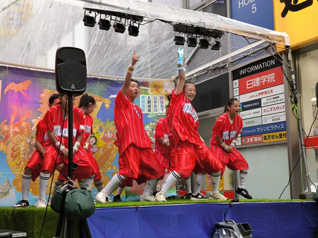 地元町田で活躍する子どもたちの元気いっぱいのパフォーマンスが会場を盛り上げました。雨の中でも多くの観客が応援し、大きな拍手と歓声に包まれました。