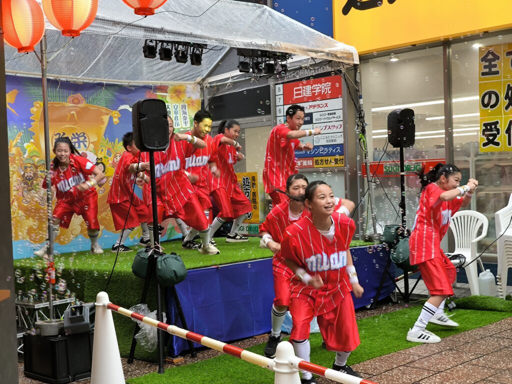 地元町田で活躍する子どもたちの元気いっぱいのパフォーマンスが会場を盛り上げました。雨の中でも多くの観客が応援し、大きな拍手と歓声に包まれました。